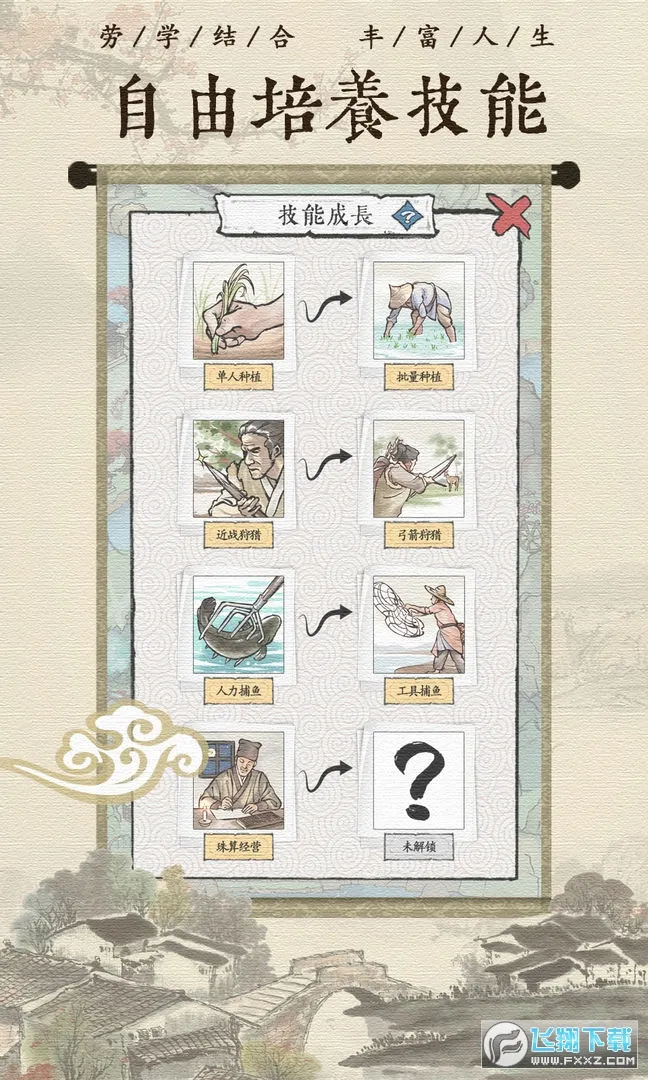 《古代乡村人生》是古风模拟游戏。玩家化身村长,管理村庄事务、学习生存技能。玩法自由,能体验多样活动、处理随机事件、参与建设、闯荡村外、追求爱情。游戏采用水墨画风格,呈现真实生动的古代乡村世界 。