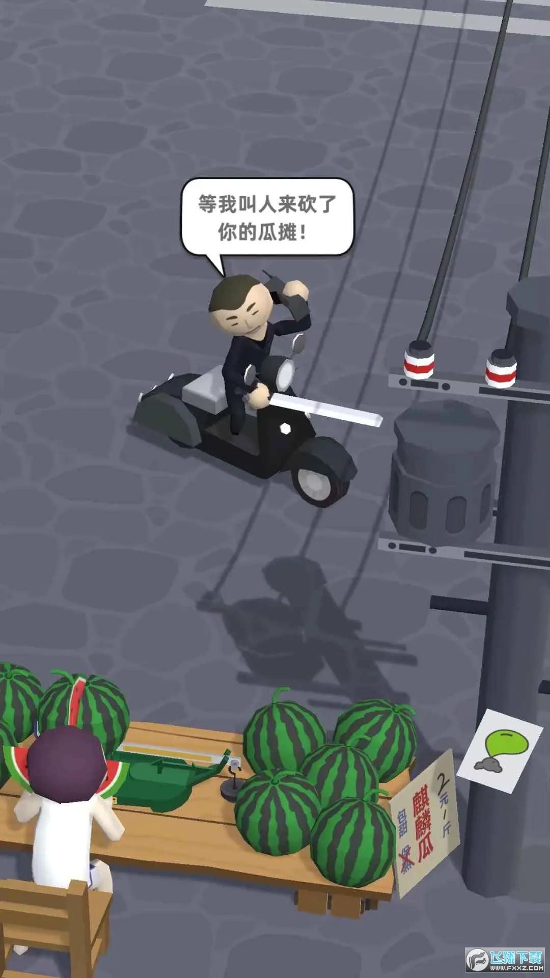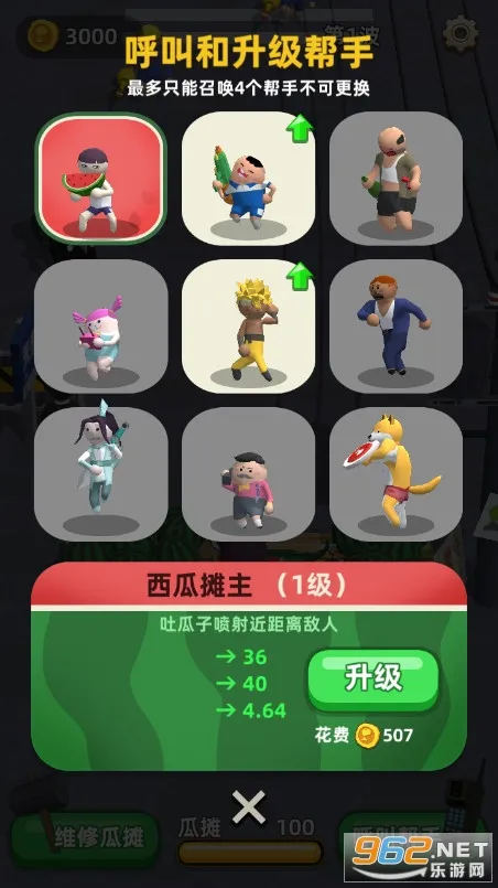 4、玩法多样:玩家能选择卖瓜人或买瓜人角色对战,可召集帮手团战,还能不断挑战关卡突破极限。