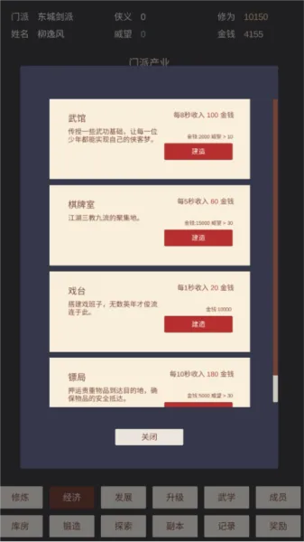 3、自动化的宗门建筑设定贴心,睡觉也能获银两,操作简单快捷,体验感良好。