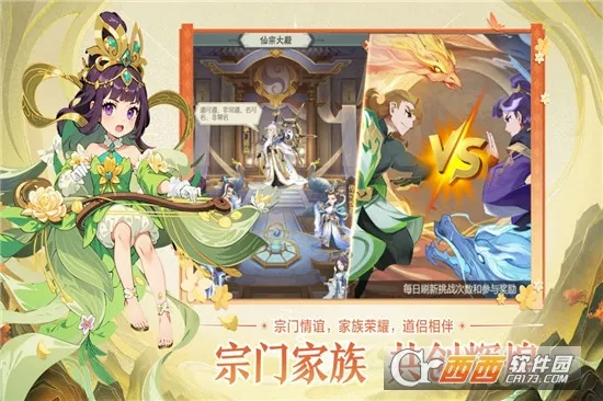 3、游戏亮点:采用国风特色q版画风打造修仙世界,玩家能捕捉200多种精灵,精灵可进阶并激活羁绊特效。战斗需策略搭配阵容,还有海量副本可挑战。