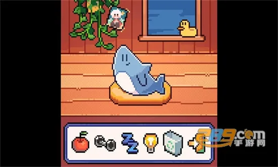 1、游戏为宠物养成玩法,玩家领养小鲨鱼后,要进行喂食、清洁等日常照顾,还能互动,购买玩具,小鲨鱼会给予反馈。