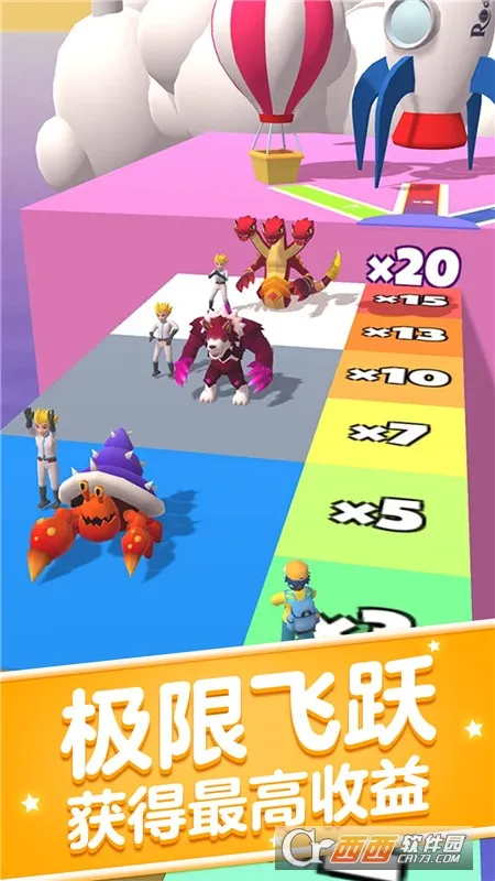 3、操作简单,左右滑动控制角色移动即可跑酷,赛道丰富多样,有独特机关与障碍,支持多人组队互动。