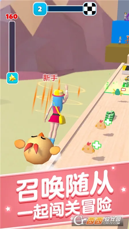 4、画风清新简约,人物、宠物形象可自由选择,游戏过程有彩蛋玩法,闯关能解锁金币奖励用于购买道具或升级装备。