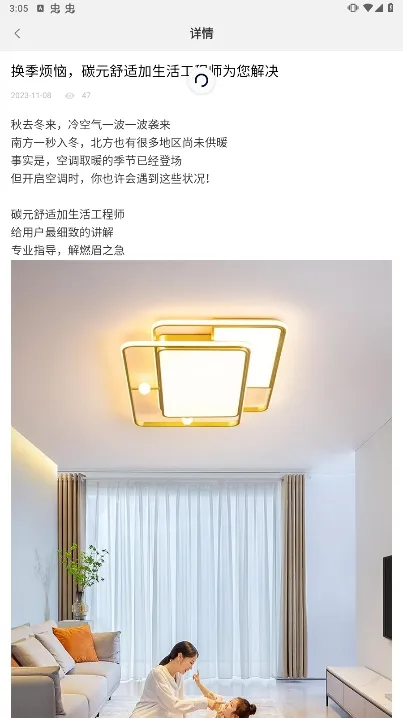 2 舒适健康:通过热辐射全屋控温,避免空调直吹不适,有独立新风和空气净化功能