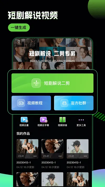 2、具备多种实用功能,如短剧解说快速生成,一键去重清理重复素材,还有丰富视频处理工具。