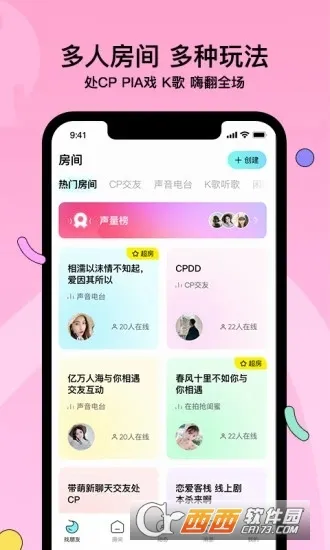 1、独特交友模式:以声音为核心开展社交,有语音匹配、匿名匹配等,还有主题房间可处cp等,开创全新社交体验,让交流更真实自然,助用户建立深厚情感连接。