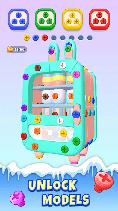 1、拆螺丝玩法:在游戏中处理同色螺丝,将其拖入匹配箱子以拆开复杂3D模型,如复古小玩意、奇幻机械等,过程轻松解压。