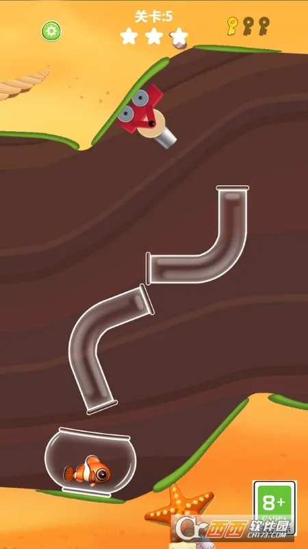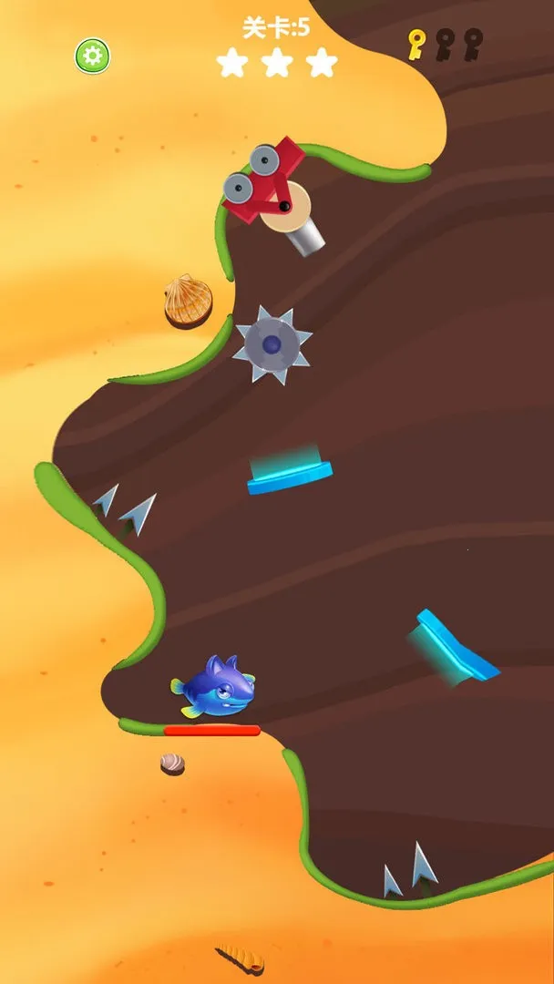 2、游戏玩法类似愤怒小鸟的物理弹射,要掌握发射角度和力度,让小丑鱼越过或摧毁玩具等障碍 ,且过程中需躲避其他鱼类。