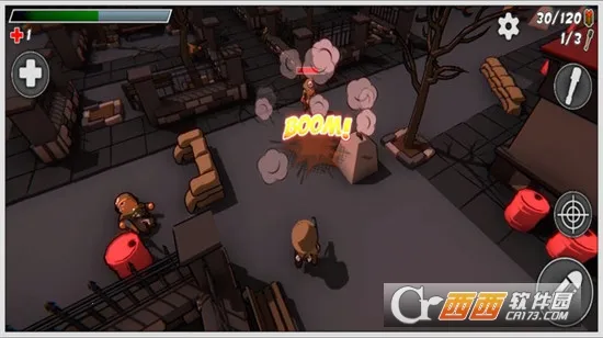 2、游戏玩法丰富,可通过射击汽油桶、炸药包制造爆炸,完成闯关任务,在对战中不断获取更多武器提升实力。