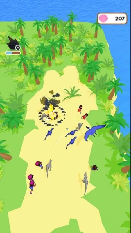 4、玩法丰富自由,可自由捕食弱小恐龙提升实力、冒险解锁任务,还能自由招募恐龙和原始人,在多样地形展开精彩战斗。