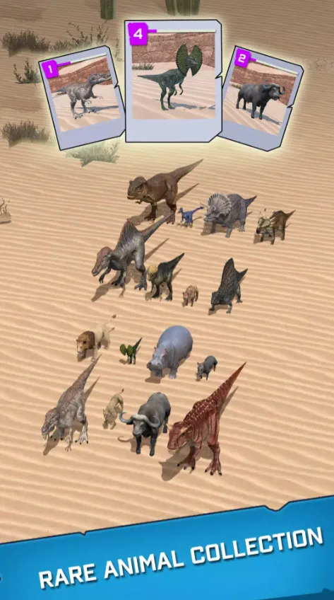 2、采用次世代3D建模技术,参照化石研究数据还原恐龙皮肤纹理、肌肉运动轨迹,配合音效与特效带来沉浸式战场体验。