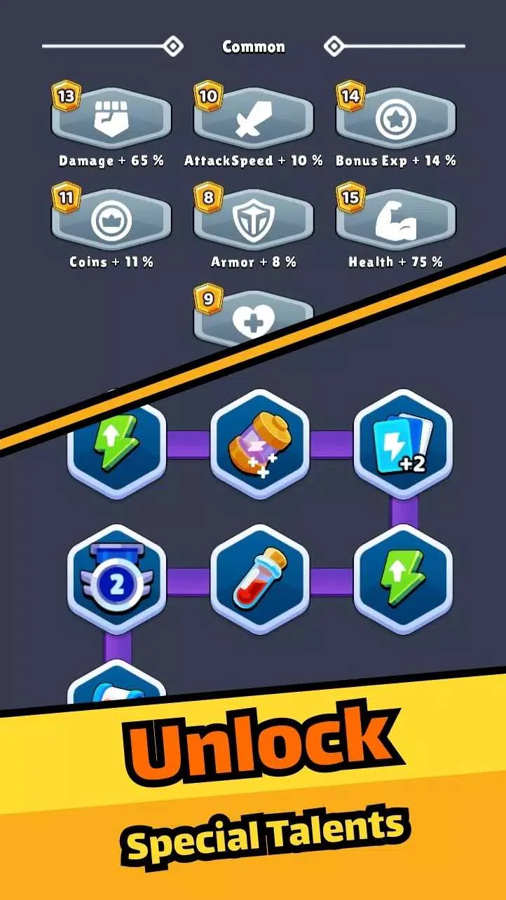 4、自由探索升级:玩家可拿武器在神奇世界探索,使用众多关卡道具,自由升级等级增加经验,还能探索广阔地下城世界。