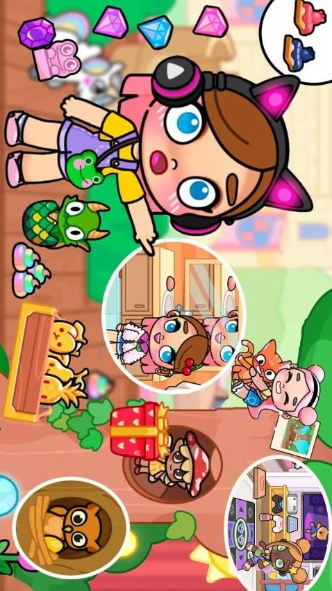 1、丰富场景体验:游戏拥有海量绚丽场景,整个城市小镇有8个岛屿可供游玩,奇幻的小镇中玩家能自由探索,从神秘森林到夸张糖果王国,还能解锁多个不同的房间主题,体验更多有趣内容。