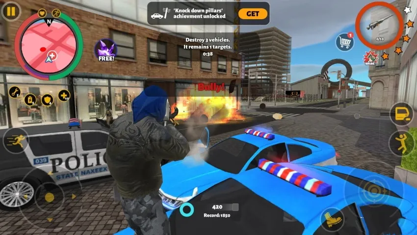 1、游戏玩法丰富:玩家化身拥有绳索技能的超级英雄,在开放世界城市中穿梭,执行打击犯罪、救援等任务。操作简单,通过左右轮盘控制移动和攻击,还能利用绳索快速移动,可进入载具操作,商店有武器道具可购买。