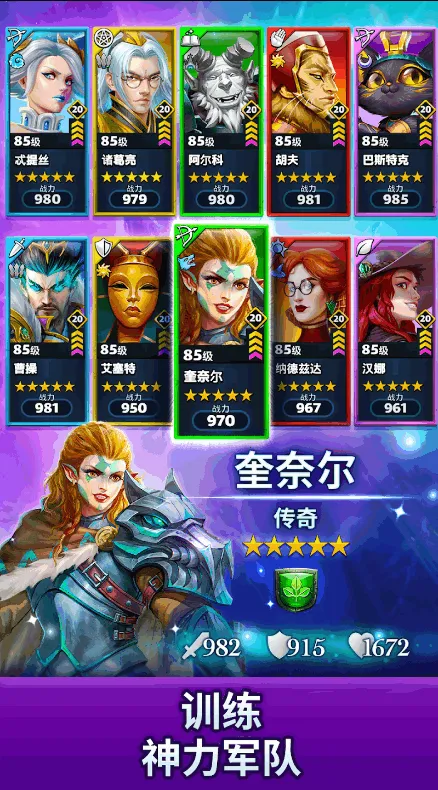2、英雄养成:收录数百位传奇英雄,采用卡牌游戏养成形式,玩家可通过吞噬卡牌升级、积累战斗经验和家园产出材料提升英雄实力,英雄有不同属性、品质和技能。