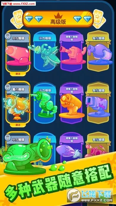 4、新手攻略为使用金币购买炮塔,合成数字和颜色相同的炮塔,移动炮塔到合适位置,遇到新敌人集中火力阻拦,解锁新炮塔位置开启更多类型炮塔,击败BOSS获新炮塔增强防御。资源经双重核验,适配不同安卓系统和设备,获取高效。