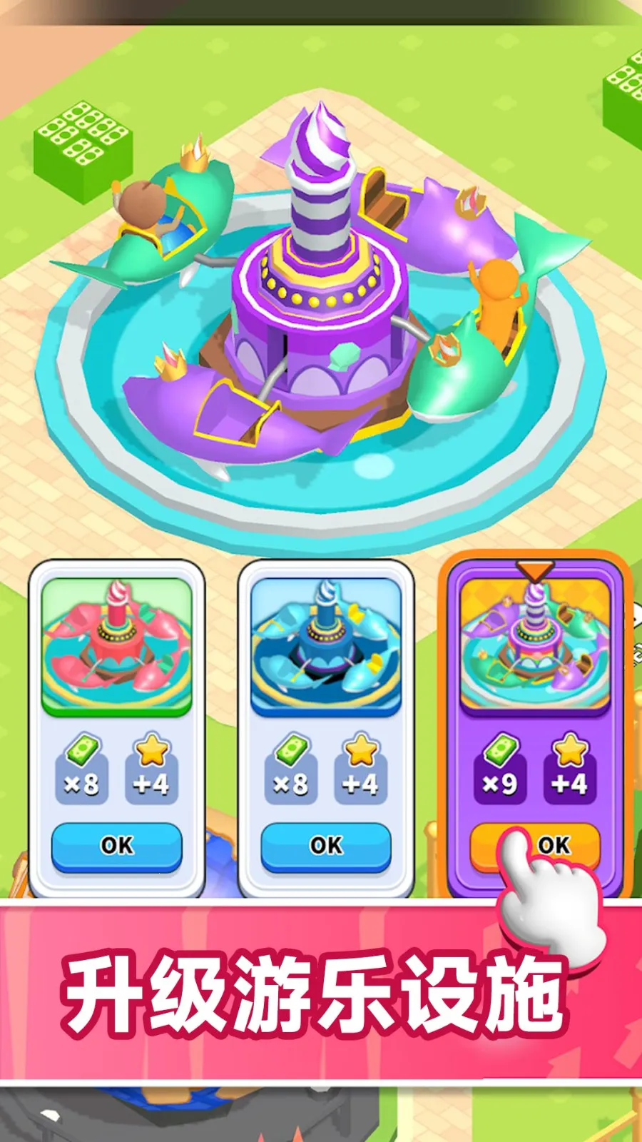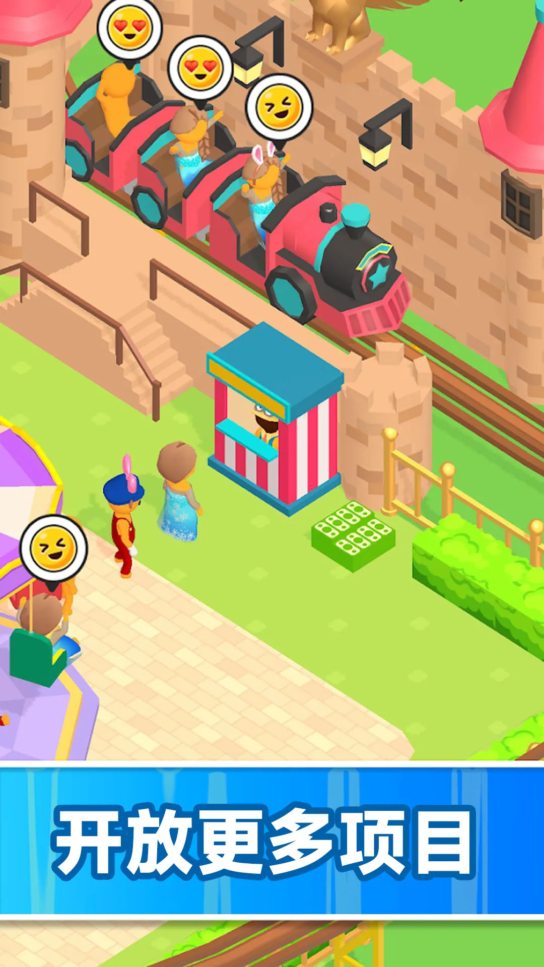 初始资源有限,需通过基础任务积累资金,逐步解锁更复杂的游乐设施与功能模块,体验从简陋摊位到繁华乐园的完整建设过程。