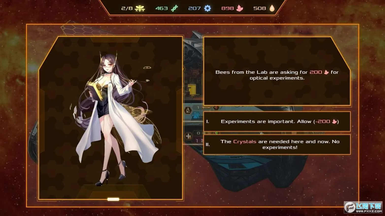 1、游戏背景与挑战:在赛博蜂巢中,玩家化身为星际飞船指挥官,带领拟人化智能蜂巢船员在深空求生。资源匮乏与未知威胁并存,玩家的决策影响族群存亡。生存是核心挑战,需精细管理资源,确保飞船和船员正常运转。