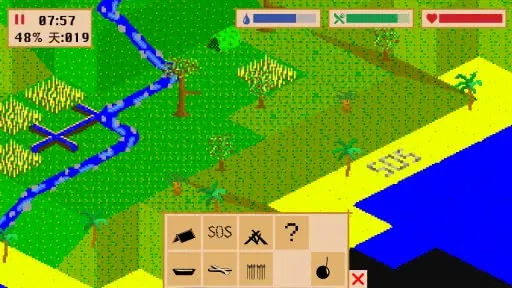 1、游戏背景与设定:《沉船余生(荒岛求生)》将玩家抛入与世隔绝的像素荒岛,玩家是船只沉没后的唯一幸存者,开启艰苦求生之旅。需关注生命、饮水和饥饿三条核心指标,任何一项归零即游戏终结。