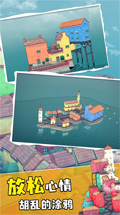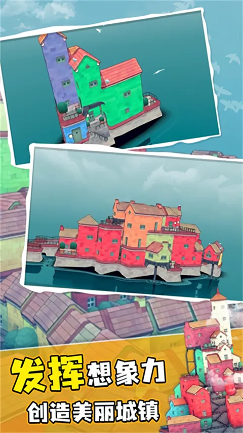 2、风格画面精美:游戏采用手绘画风,画面精致唯美又梦幻,风格独特。玩家可自由匹配各种场景和特殊环境,色彩丰富,能自动滑动点击生成不同类型房屋,还能打造出如蜿蜒街道的古城镇、小巧村庄、高耸教堂等多样建筑。