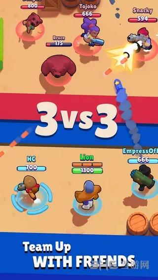 4、游戏主打快节奏3V3对战,三分钟超高速对决,热血刺激,还支持玩家组队开黑,可与好友一同展示个人射击技术和团队协作能力,享受即时对战乐趣。