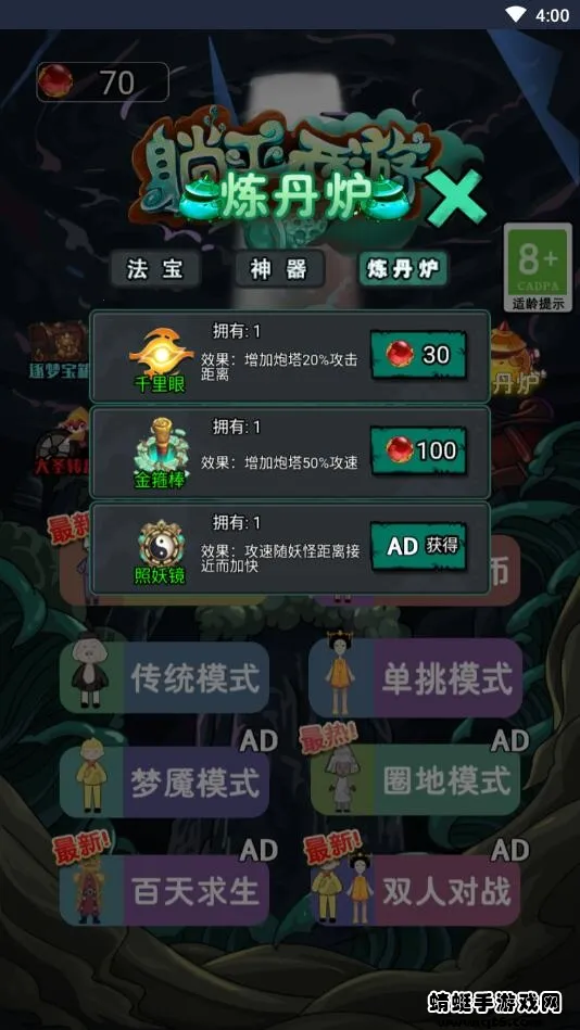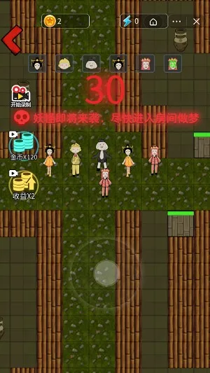3、玩法多样:有正常防御获金币买道具升级武器击退妖怪玩法,还有无限金币模式等,玩家可扮演梦魇角色对抗,也能在圈地模式扩展防御区域。