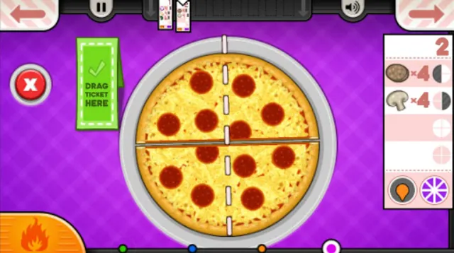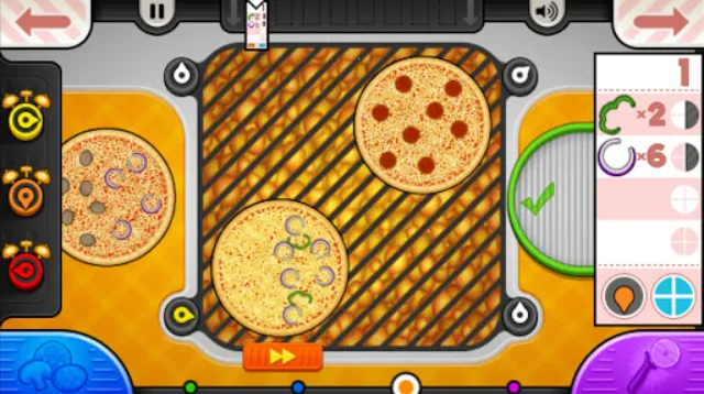 2、角色与站点:游戏工人是罗伊和乔伊,有特定制服。点餐台记录客人披萨口味,店铺升级后可送外卖;制作台按要求搭配主成分与配料;烘烤台按顾客所需时间烤制;切割台将披萨切成指定片数,切错会扣分。
