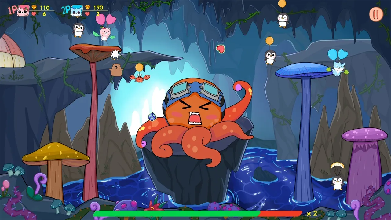 在游戏里,你能操作章鱼乘坐气球在空中飘荡、飞行和战斗,去踩破其他对手的气球来赢得胜利。它能解决你休闲时刻打发时间的需求,带来轻松愉悦的体验。