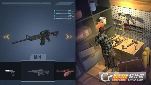 2、多样任务与装备系统:完成各类任务可获取丰富武器与装备,部分需金币解锁,还能通过任务进度解锁新武器,随时根据战况更换装备,多种挑战任务充满未知危险。