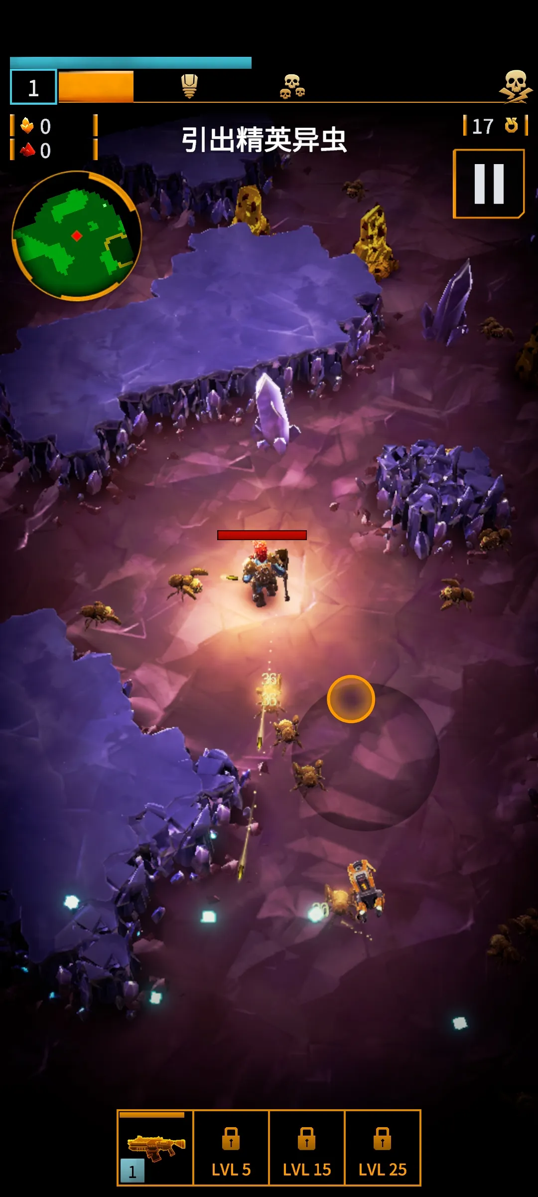 3、收集升级元素:挖掘资源杀死虫子,升级装备,收集并组装各种毁灭性的枪械,解锁强大升级以求生存。