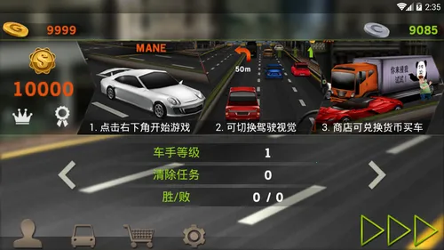 4、游戏细节到位,如前方车刹车会亮刹车灯,且行驶需遵守交通规则,发生碰撞或违规游戏结束,能起到很好的警戒作用。
