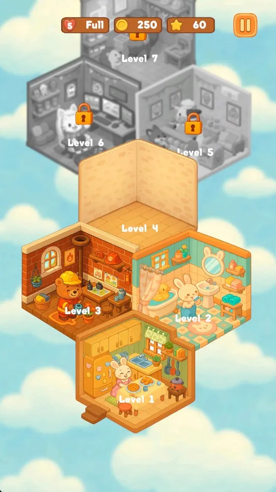 4、特色系统与机制:动态光影系统模拟不同时段光照变化;家具碰撞检测机制和浮动对齐功能让家具布置轻松精准;社区画廊功能可上传作品,与其他玩家互动。