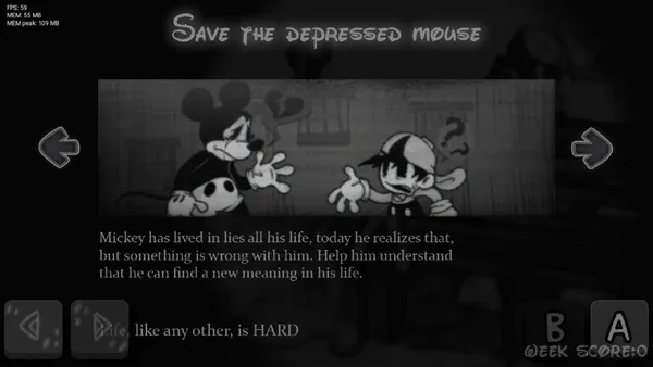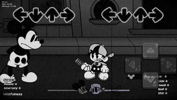 4、游戏亮点众多,要在确切节拍点击确切箭头,有摇滚世界简单技巧,还有众多fnf歌曲标题。特色是有全新恶搞米老鼠模组,关卡多、音乐节奏不同,有多种剧情关卡内容与模式。玩家按音乐节奏按键操作获高分,避开障碍,还能通过挑战解锁更多音乐和模块。