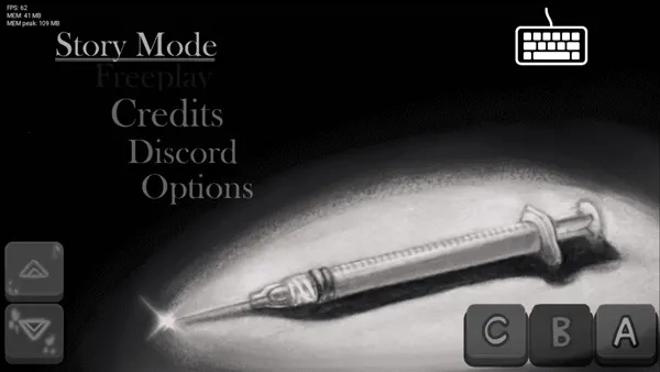 3、该游戏攻略简单,打开周三不忠夜V2模组低配版,可先在options设置,再点击storymode选章节,加载后按音乐箭头按上下左右,失误过多会被电击导致游戏失败。