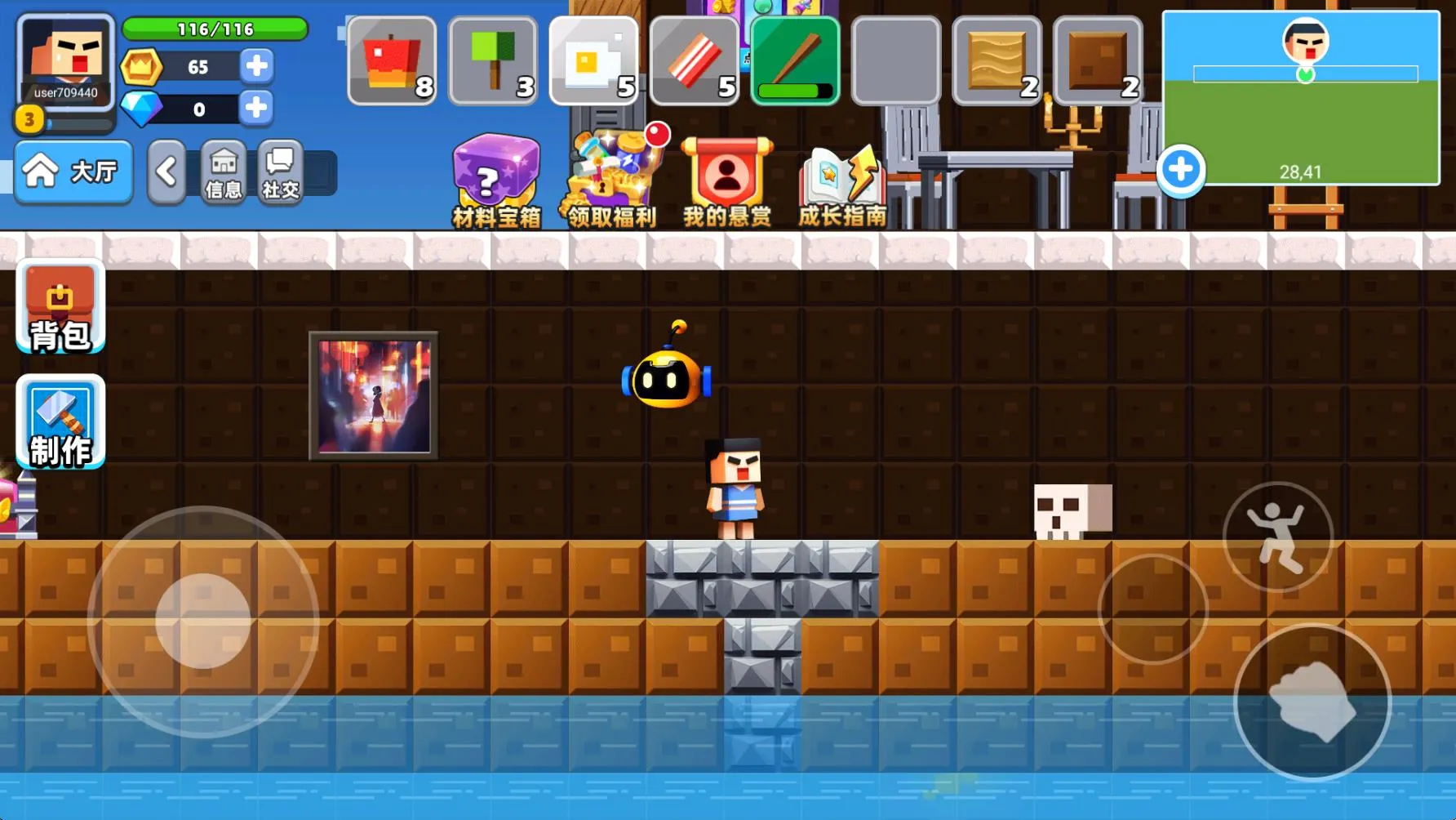 6、自由探索这个世界来收集更多的材料,不断制作出各种物品道具在这个世界里生存下去。