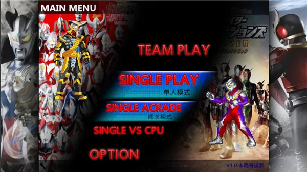 想在线玩超刺激的特摄格斗游戏吗?那就来试试死神vs火影特摄版吧!在这个游戏里,你能自由挑选奥特曼、假面骑士等经典特摄角色。进入游戏首页,点击play,可选择单人或多人模式开启闯关。选好出战角色和技能,进入1v1对战界面倒计时后,就能正式开打啦!左边用方位键,右边控功能键,要是不知咋出招,点暂停键,左上角会给出招表。这里有训练、单人、故事、多人、战斗等多种模式,能自由战斗。你得灵活操控角色击败对手,还能装备先进武器,施展华丽招式。不管是防守还是进攻都很关键,随时能参与惊险的三对三游戏。每个角色属性和技能不同,你能按需选择,提升战斗力,探索未知世界,成为特摄战斗大师,随时随地享受这充满乐趣和挑战的战斗过程。