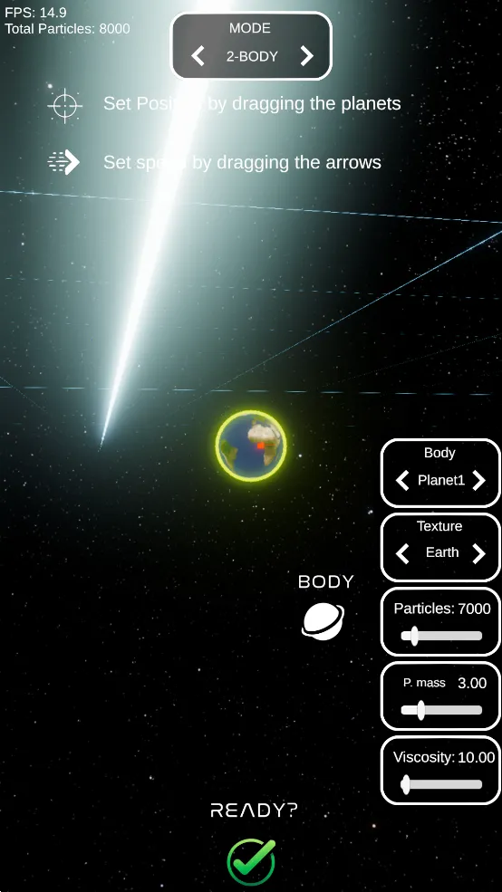 2、该游戏特色鲜明,高度自由,走向与结果由玩家操作和设置决定;兼容多种设备系统,调节精度和粒子计数就能流畅运行;利用领先物理引擎实现真实碰撞模拟;提供多样星球选择。