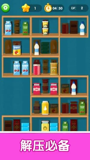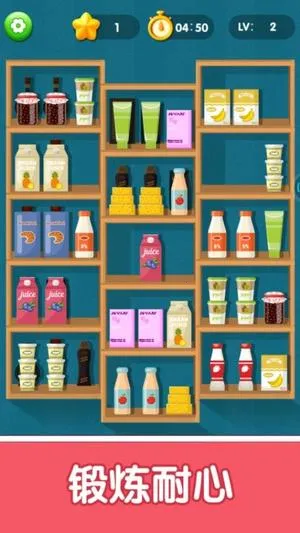 3、它操作简单直观,玩家只需拖动物品至指定货架,三件同类物品叠放即可消除,轻松易上手。