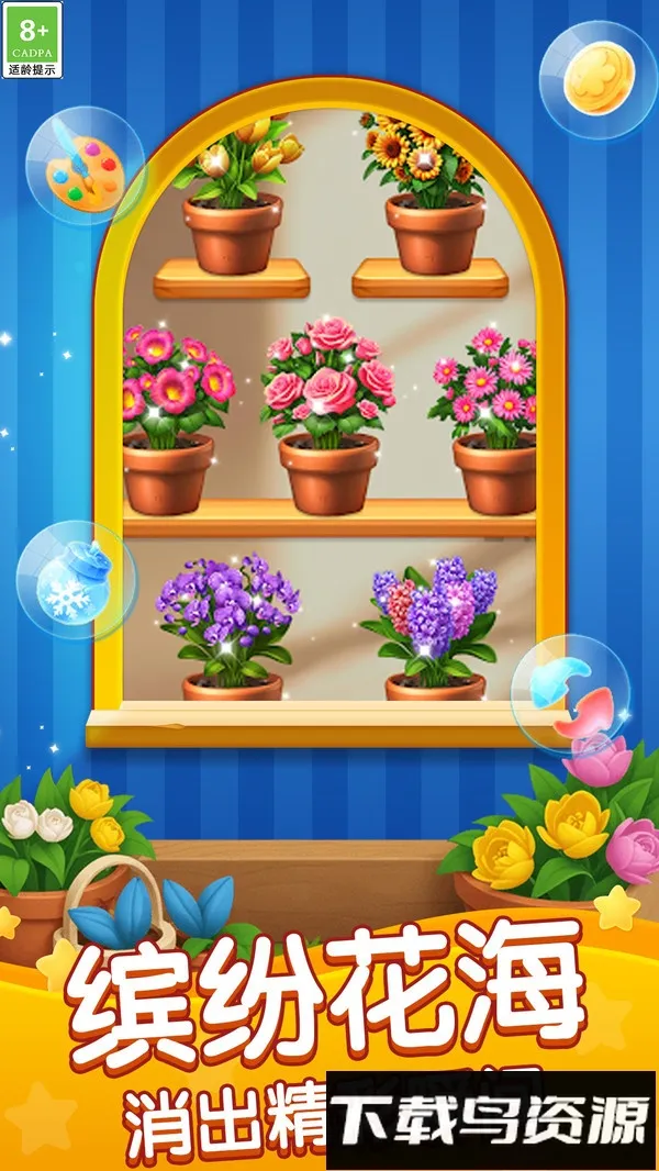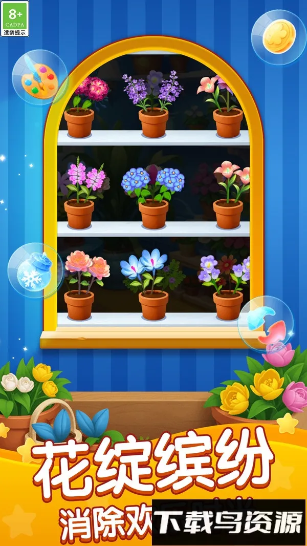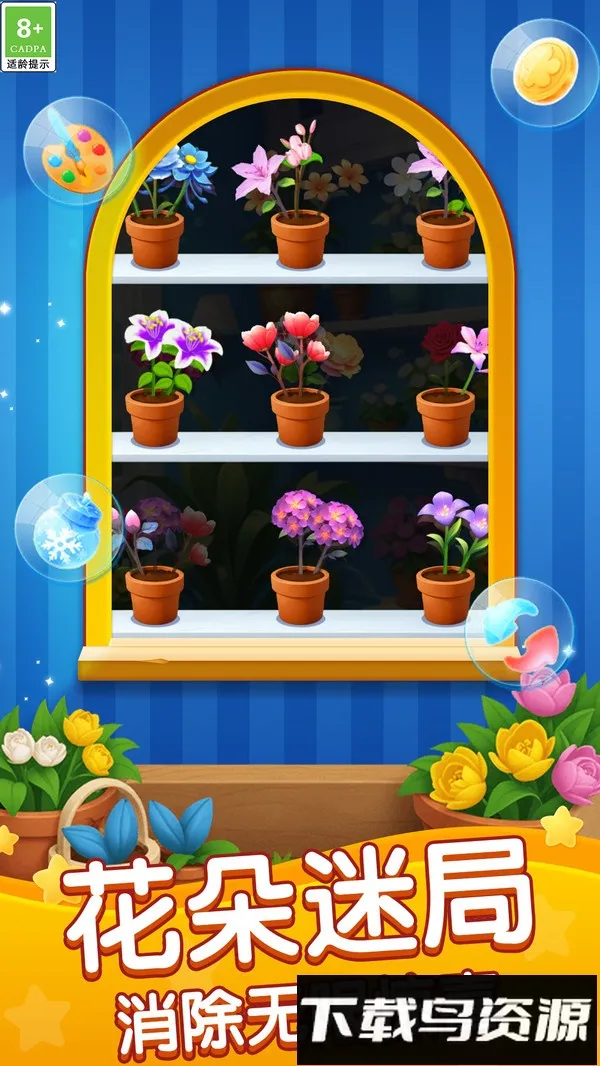 2、特色亮点突出:以温暖明亮花卉为主题,画面风格细腻生动,每一次消除都绽放绚丽光影。丰富关卡融入多样障碍与任务目标,设有不同目标与挑战,完成可收获金币与奖励。连锁特效带来视觉畅快冲击,轻快悦耳的音效营造沉浸式氛围。