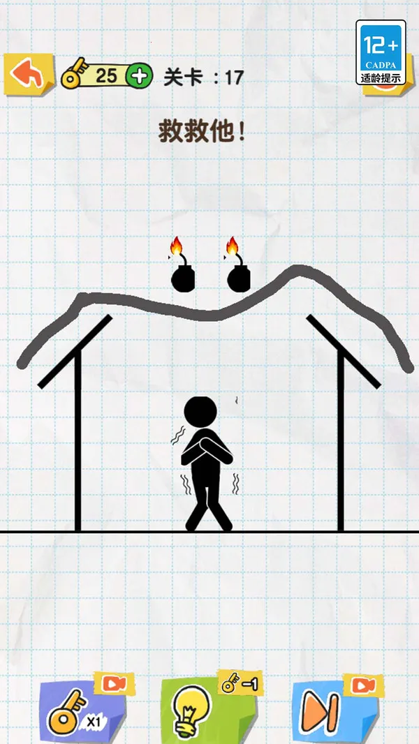 2、玩法独特:以画线的方式来帮助火柴人摆脱各种危险,不按常理出牌,需要开动脑筋,用意料之外的合理方式完成挑战,训练解决问题的能力。