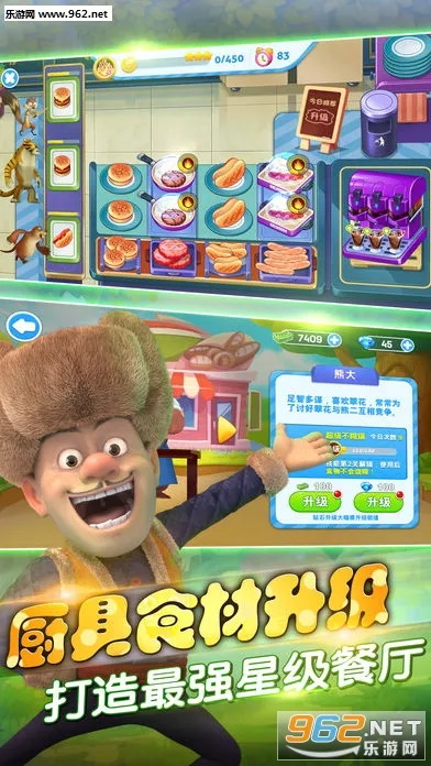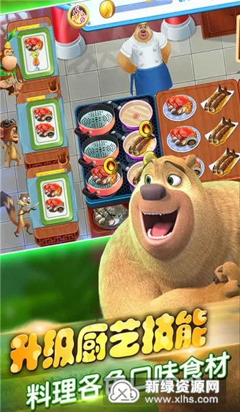 3、研究食谱经营:玩家要和熊大熊二共同经营餐厅,不断研发新菜式,提升烹饪水平,创造更美味料理,满足各类食客要求,打造星级餐厅。