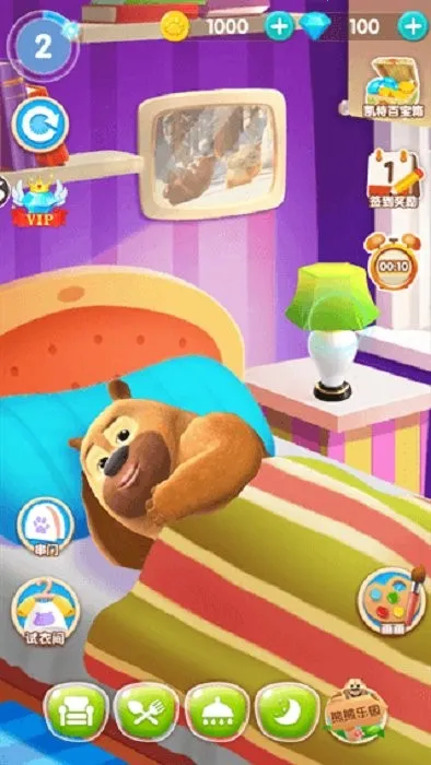 2、自由装扮:能为熊熊换上各式服装,自由布置家园,还可在试衣间用金币解锁新时装,打造独特造型。