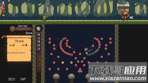 4、独特攻击机制:采用弹珠台式攻击机制,击中钉子数量决定伤害高低,巧妙运用暴击钉、刷新钉与炸弹;每局游戏体验独一无二,沿途发现各式弹珠,遭遇不同敌人,收获意外惊喜。